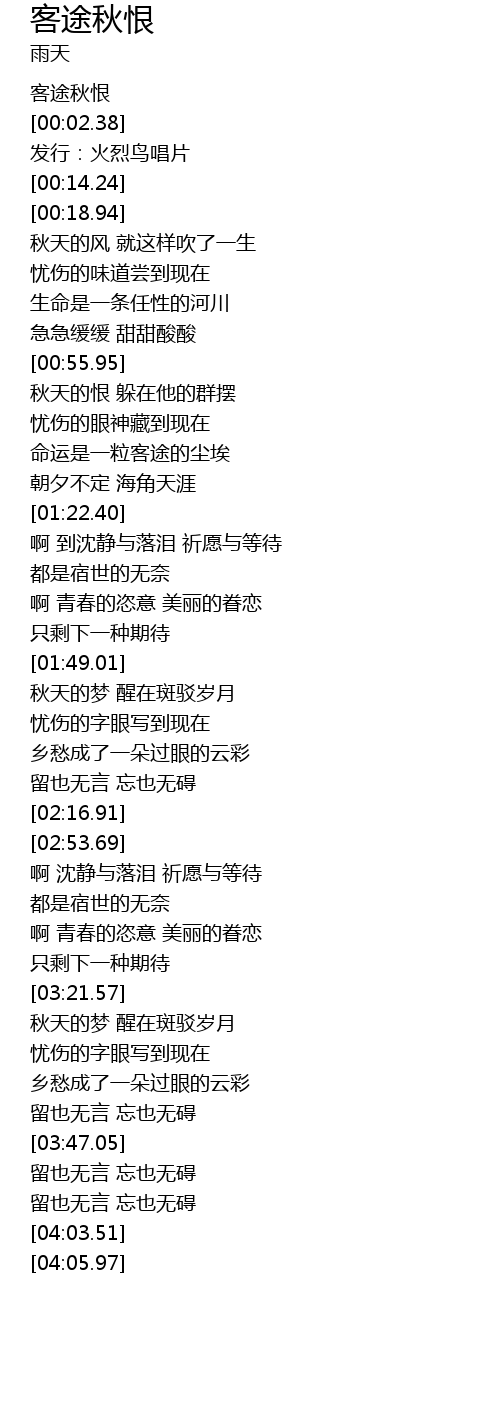 | [03:21.93] | 秋天的梦 醒在斑驳岁月 |