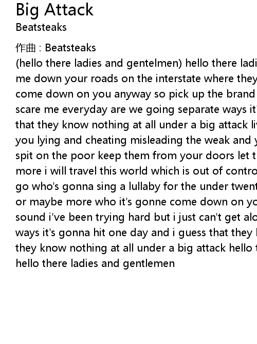 | hello there ladies and gentelmen hello there ladies and gentlemen wanna join me down your roads on the interstate where they say it' s safe no more it' s gonne come down on you anyway so pick up the brand new sound or stick to your guns and scare me everyday are we going separate ways it' s gonna hit one day and i guess that they know nothing at all under a big attack living under a big attack watch you lying and cheating misleading the weak and you put on a hell of a show you spit on the poor keep them from your doors let them suffer and fuck them once more i will travel this world which is out of control i can sense it wherever i go who' s gonna sing a lullaby for the under twentyone who' s gonna get his share or maybe more who it' s gonne come down on you anyway so pick up a brand new sound i' ve been trying hard but i just can' t get along are we going separate ways it' s gonna hit one day and i guess that they know nothing they know nothing they know nothing at all under a big attack hello there ladies and gentlemen hello there ladies and gentlemen |