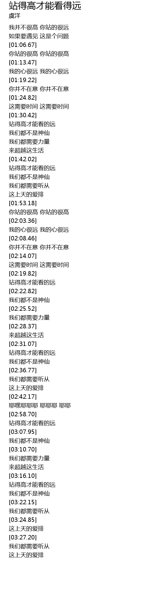 | [03:06.05] | zhàn dé gāo cái néng kàn de yuǎn |