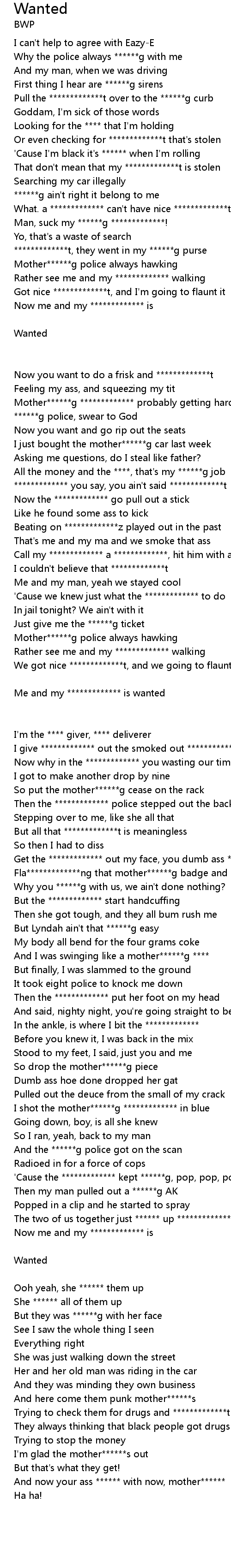 Me and my ************* is wanted