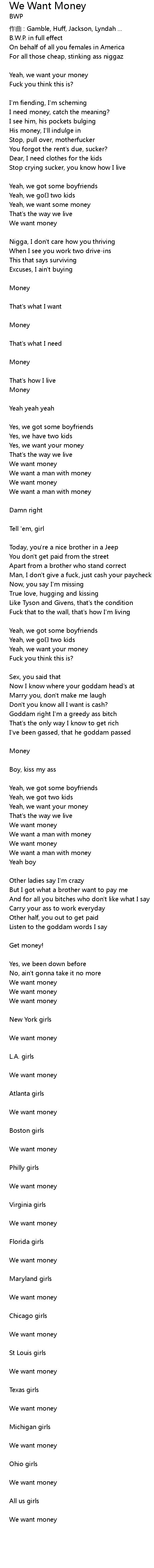 | Song | We Want Money |