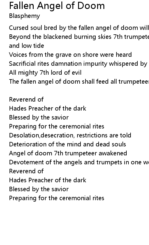 The fallen angel of doom shall feed all trumpeteers blood on command |
