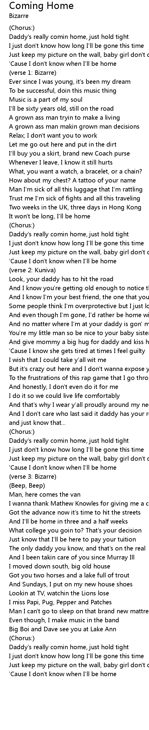 Daddy's really comin home, just hold tight |