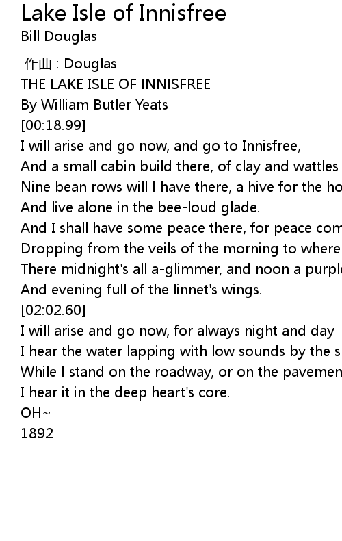 | [00:17.91] | THE LAKE ISLE OF INNISFREE |