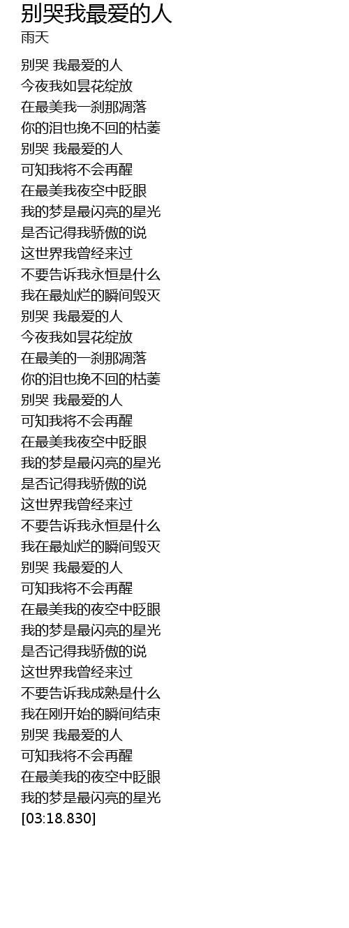| [02:59.820] | bié kū wǒ zuì ài de rén |