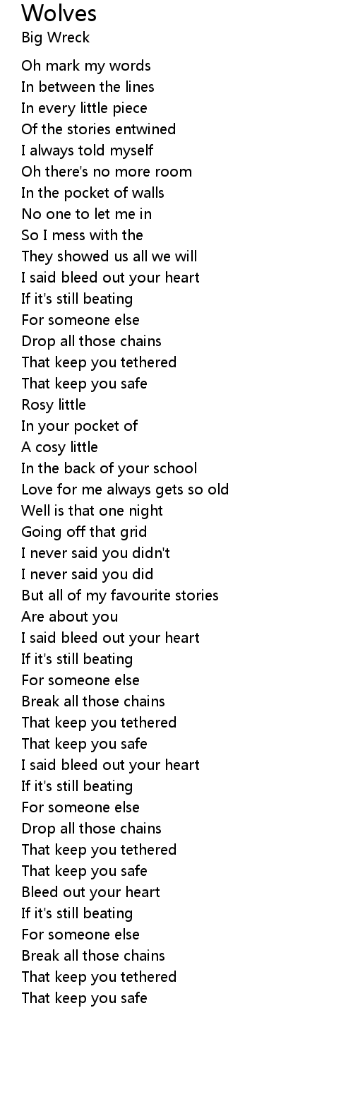 | I said bleed out your heart | |