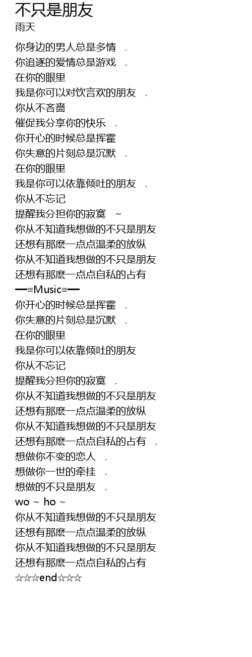 | [03:43.47] | 你从不知道我想做的不只是朋友 |