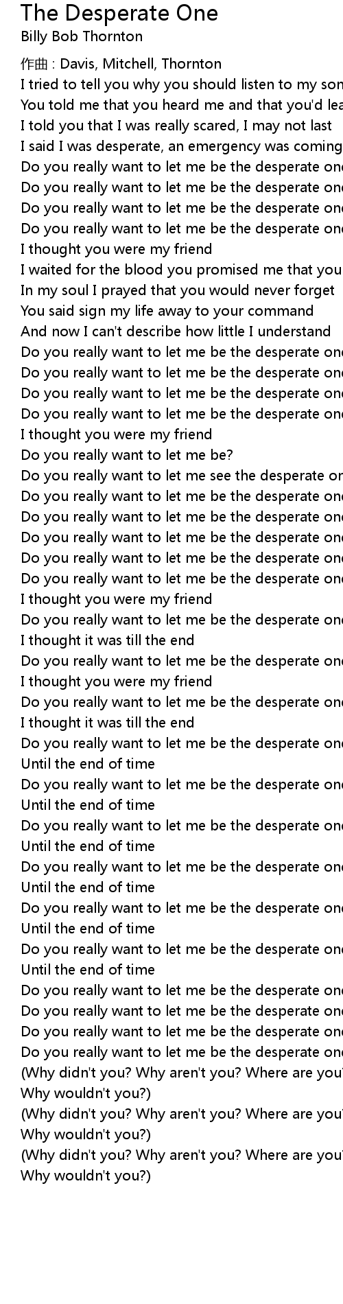 | Do you really want to let me be the desperate one? | |