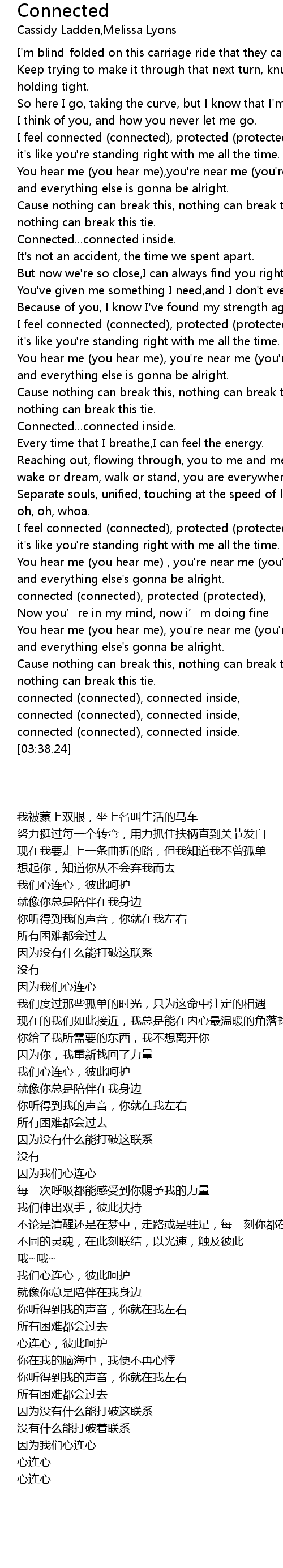 | [00:36.75] | I feel connected (connected), protected (protected), |
