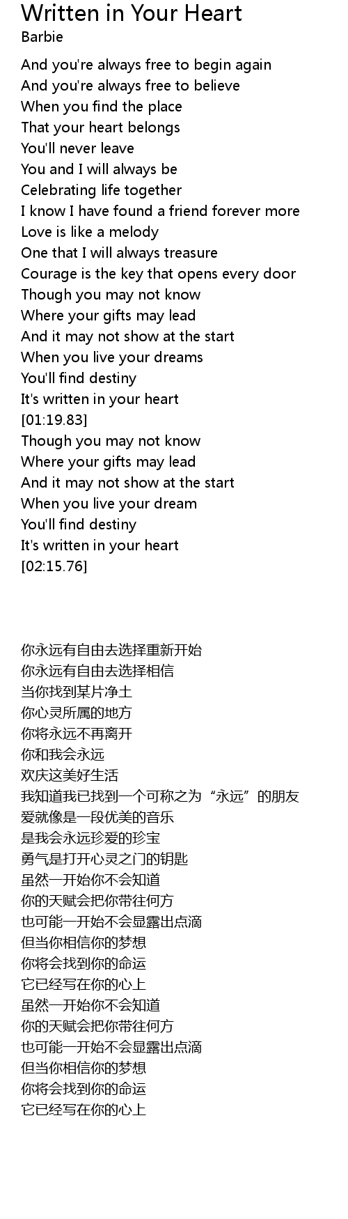 It's written in your heart |
