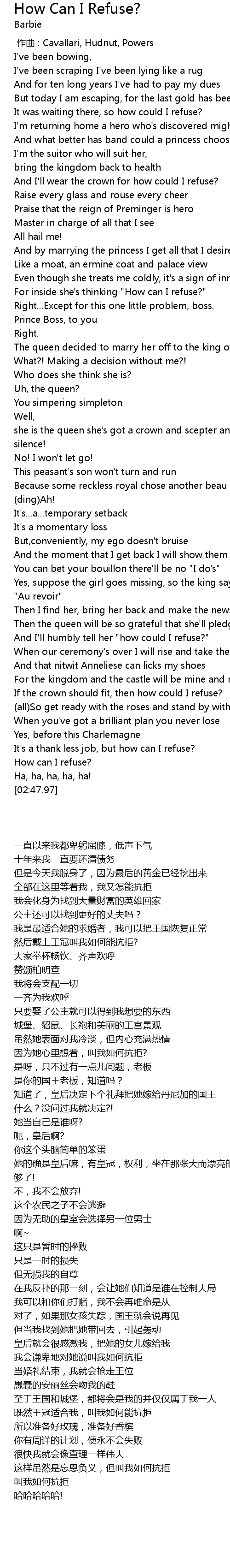 | [02:37.57] | How can I refuse? |