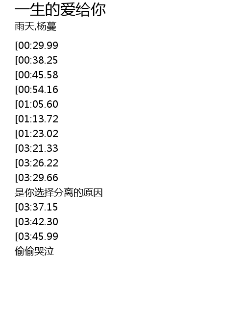 | [04:15.41][03:37.15][01:41.16] | 付出我所有痴心 一生的爱给你 |