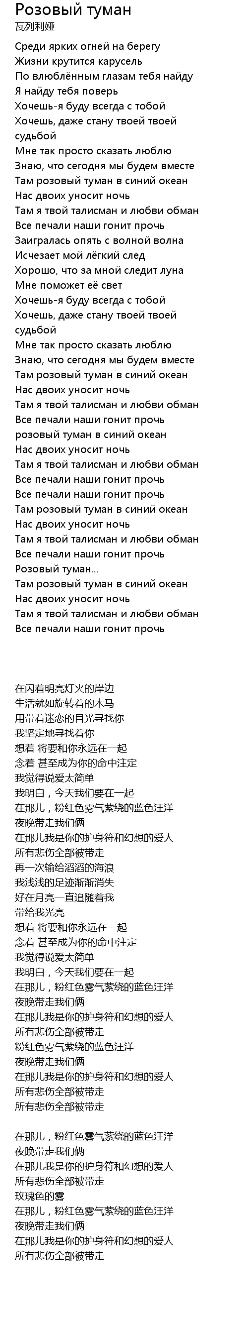 Розовый туман  Lyrics
