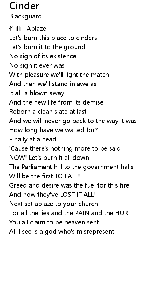 | Let' s burn this place to cinders | |