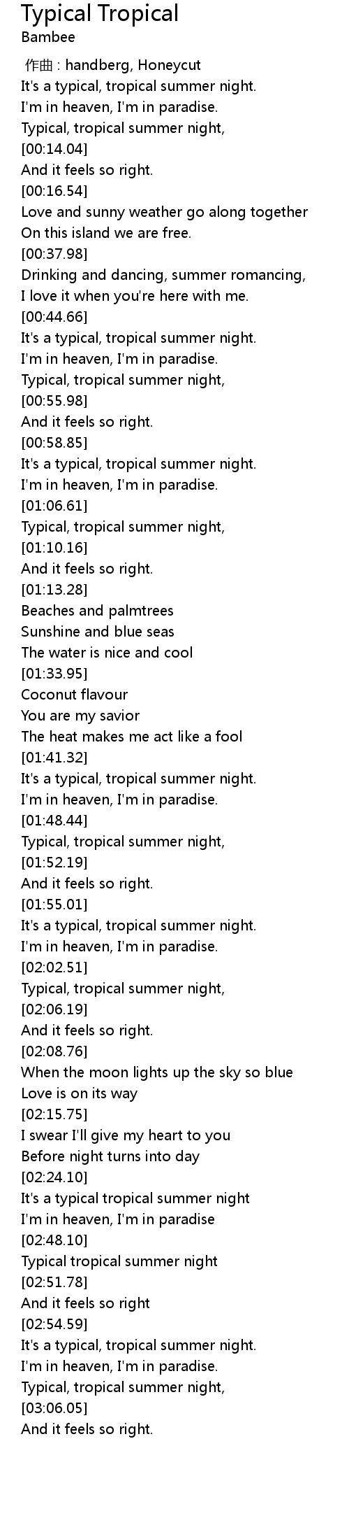 | [00:59.85] | It' s a typical, tropical summer night. |