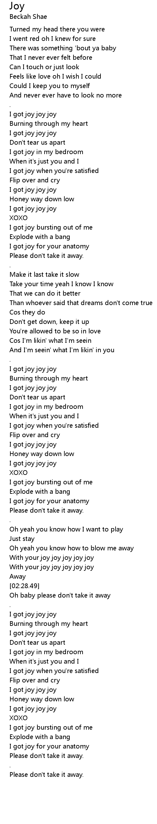 Oh baby please don't take it away |