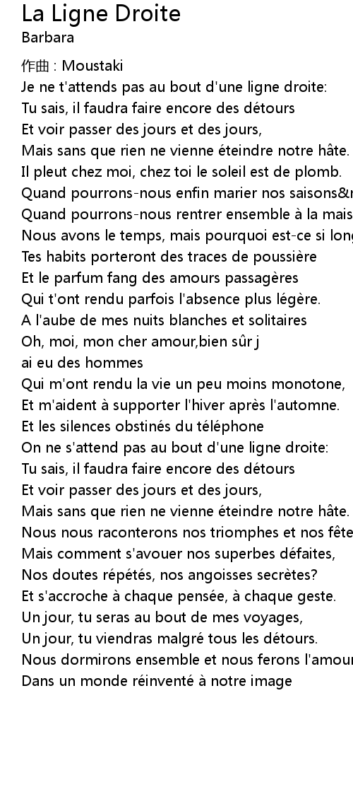 | Je ne t' attends pas au bout d' une ligne droite: | |