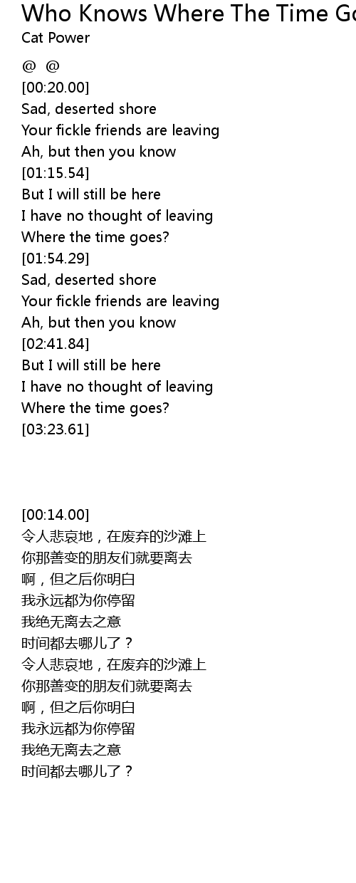 | [03:13.34] | Where the time goes? |
