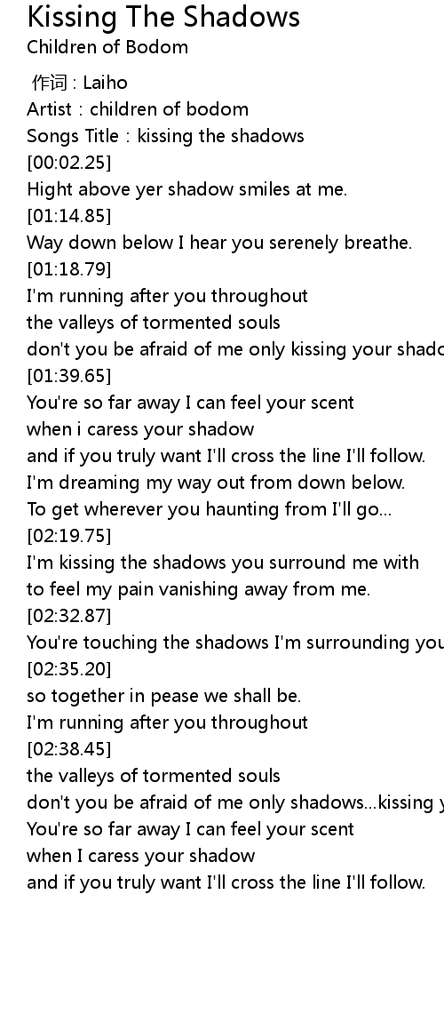 | [02:28.56] | I'm kissing the shadows you surround me with |