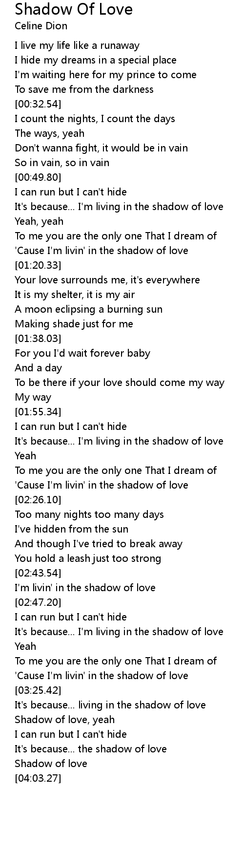 [03:15.53] 'Cause I'm livin' in the shadow of love