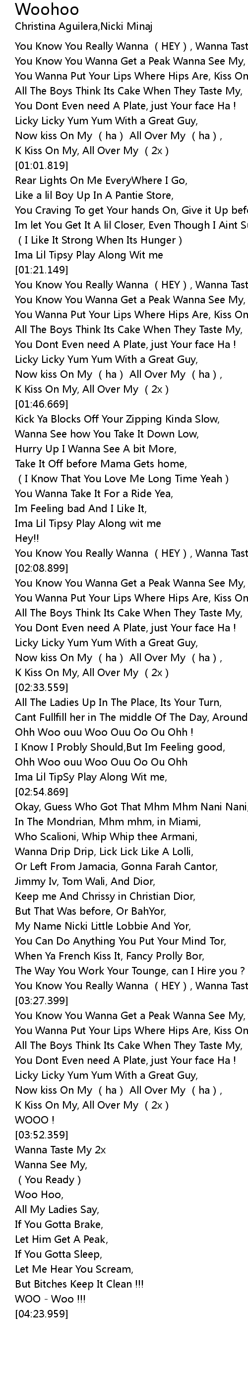 | [02:08.749] | You Know You Really Wanna (HEY), Wanna Tasty My, |