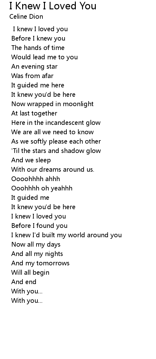 | I knew I loved you | |