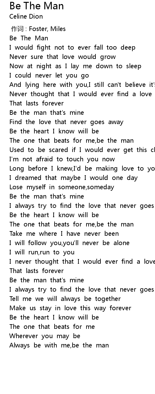 | [01:30.536] | The one that beats for me,be the man |