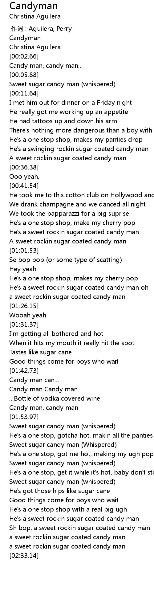| [00:34.02] | A sweet rockin sugar coated candy man |