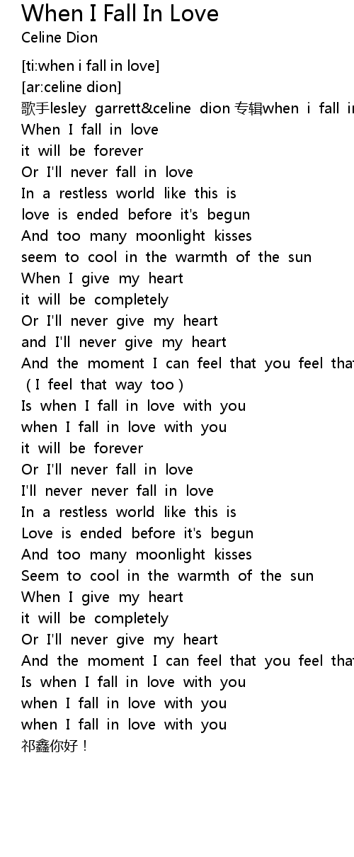 | [00:00.927] | 歌手lesley garrett&celine dion 专辑when i fall in love |