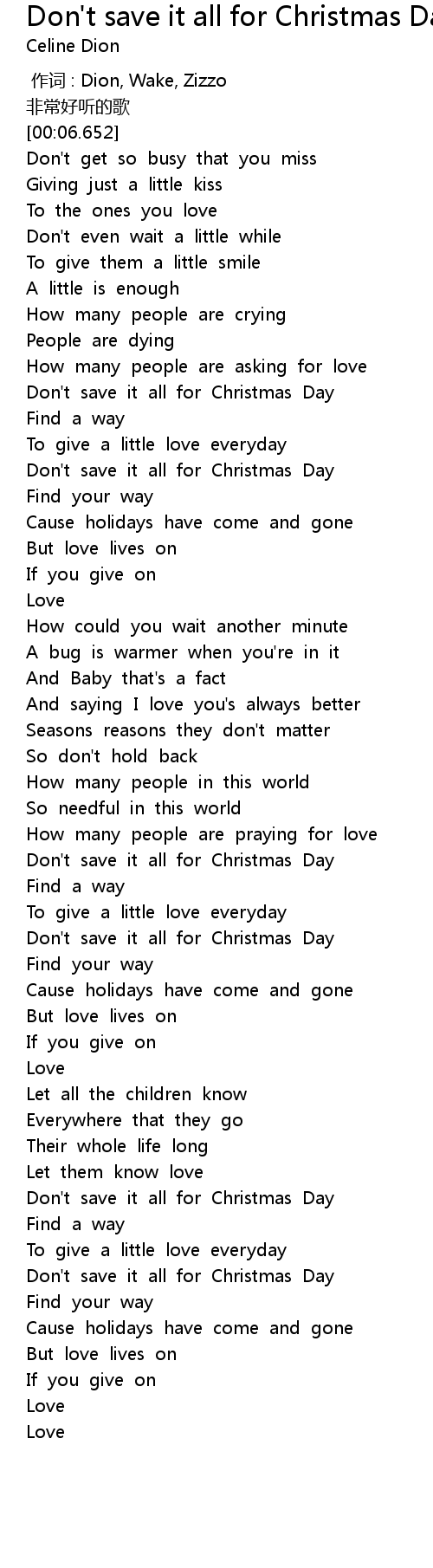 | [03:33.349] | Don' t save it all for Christmas Day |