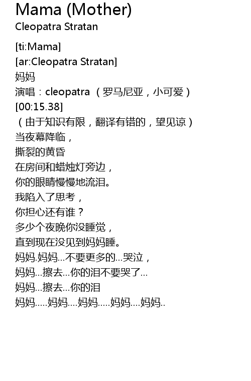 | [02:39.66] | 妈妈.....妈妈....妈妈.....妈妈....妈妈.. |