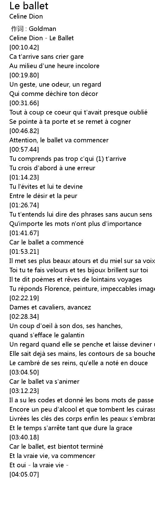 | [00:00.00] | Celine Dion - Le Ballet |