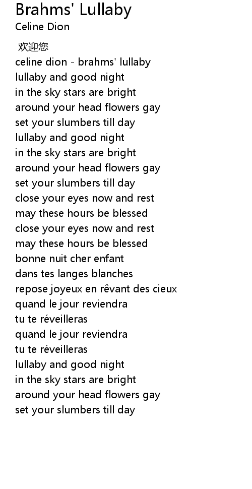 | [00:15.00] | celine dion brahms' lullaby |