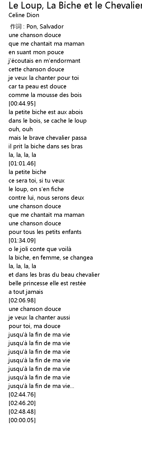 | Song | Le Loup, La Biche et le Chevalier (Une Chanson Douce) |