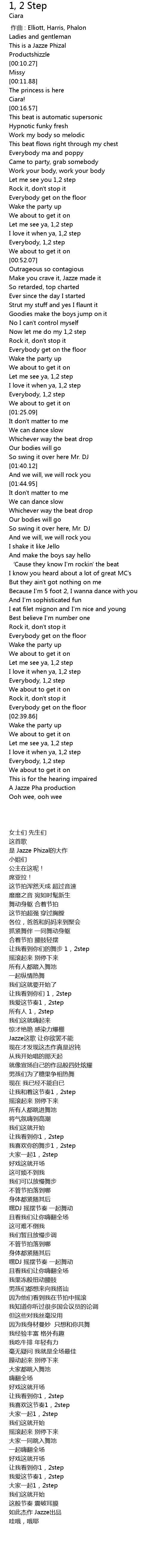 | [02:30.75] | Everybody, 1, 2 step |