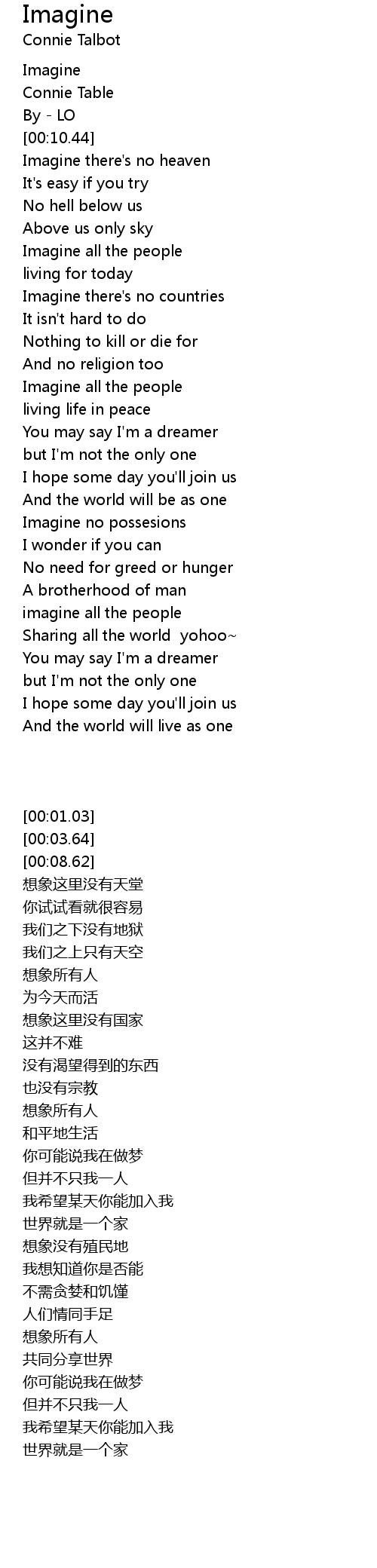 Imagine no possesions |