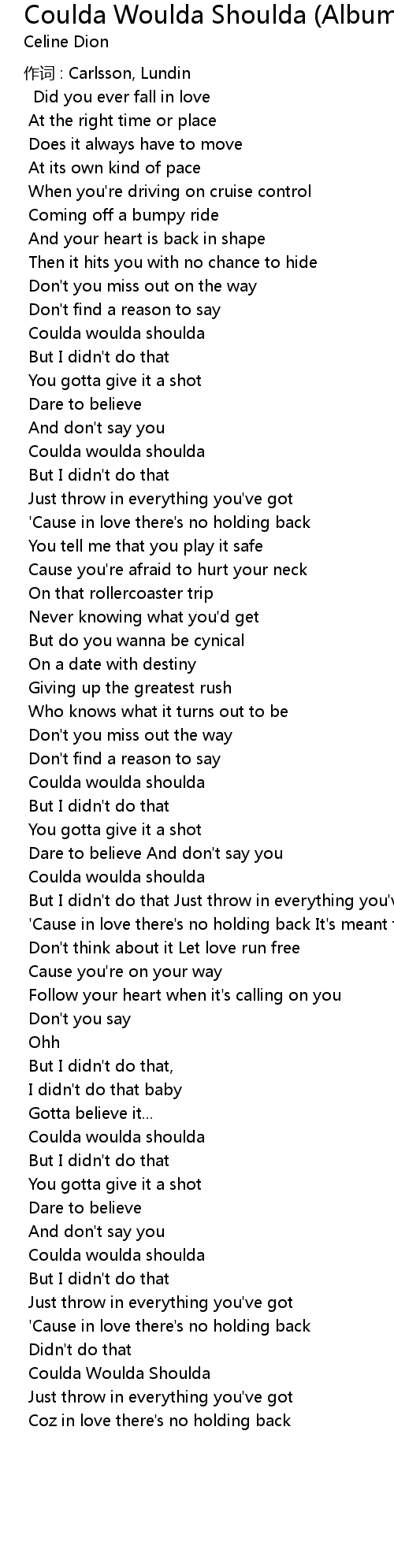 | Coulda woulda shoulda | |