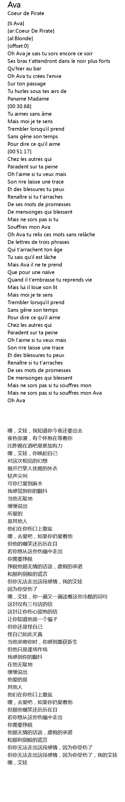 | [00:00.47] | Oh Ava je sais tu sors encore ce soir |