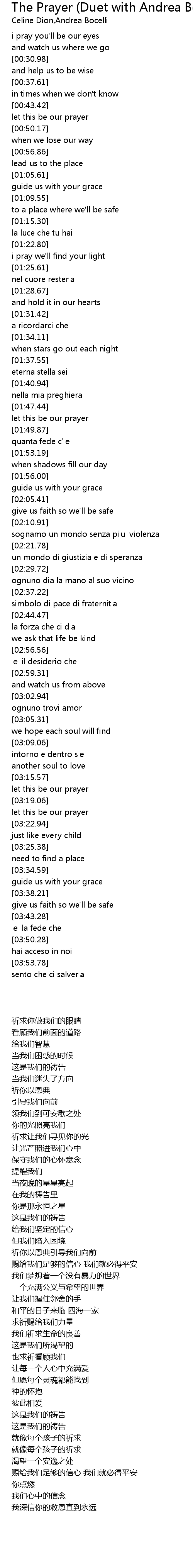 | Song | The Prayer (Duet with Andrea Bocelli) |