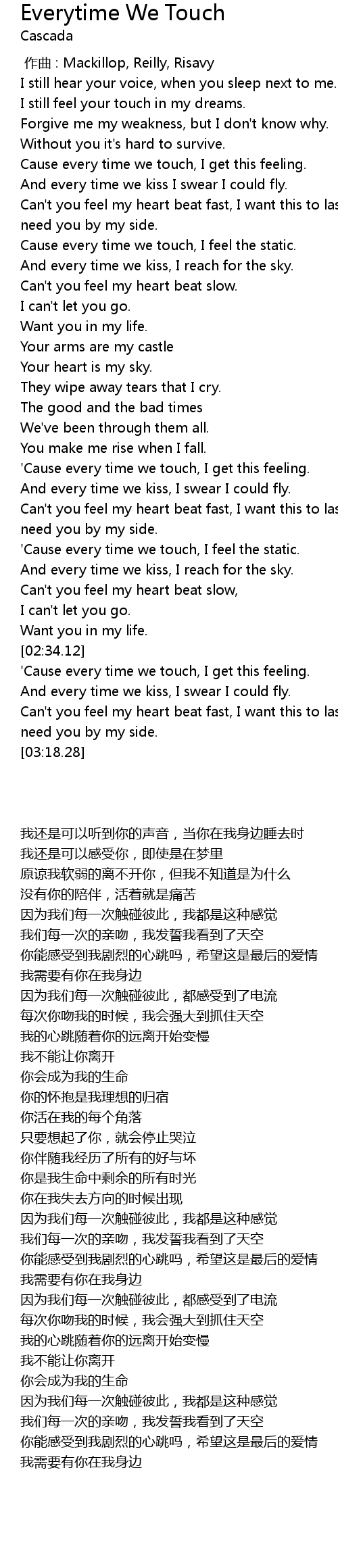| [02:59.54] | ' Cause every time we touch, I get this feeling. |