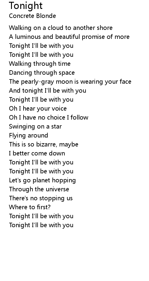 And tonight I'll be with you |