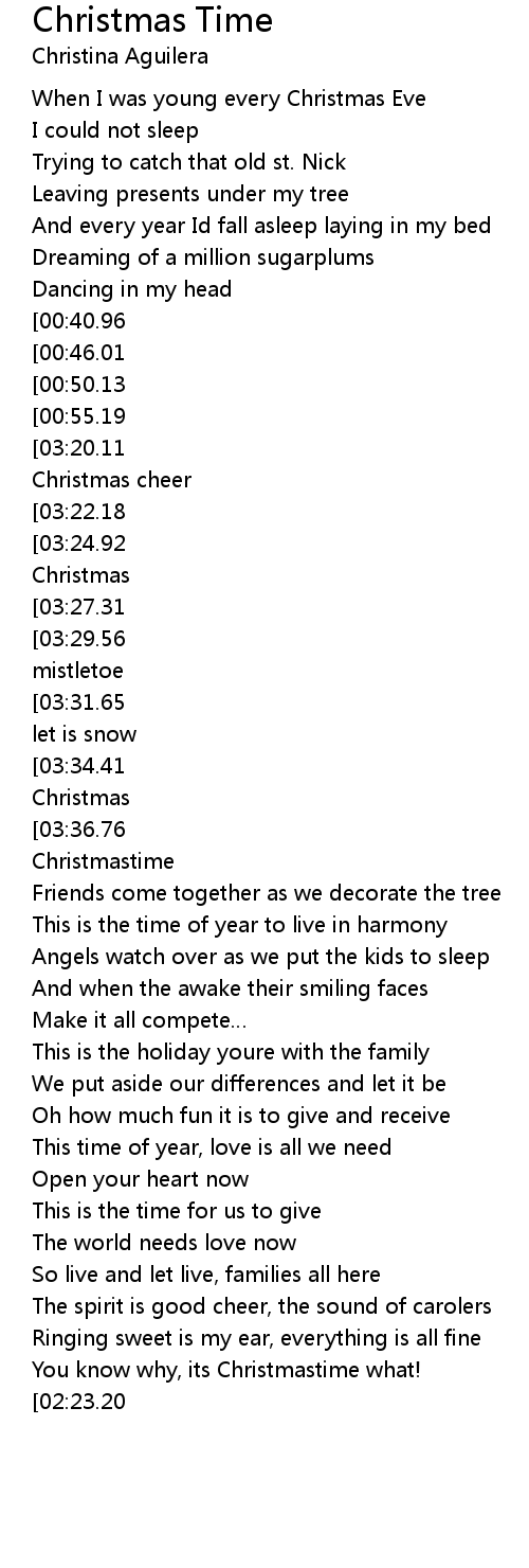 | [03:39.33][03:20.11][03:00.02][01:57.41][00:59.63] | Therell be family and Christmas cheer |