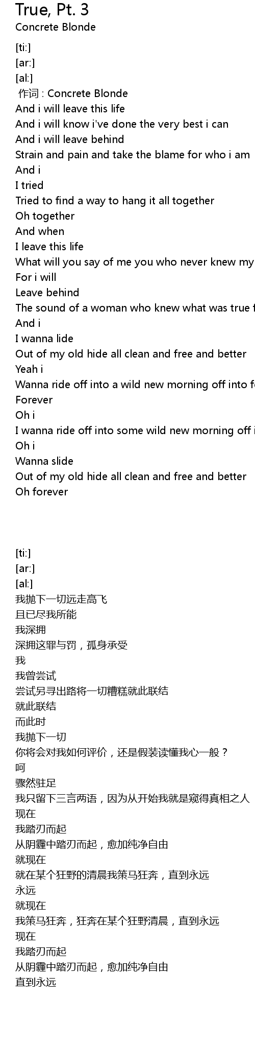 | [00:00.000] | zuò cí : Concrete Blonde |