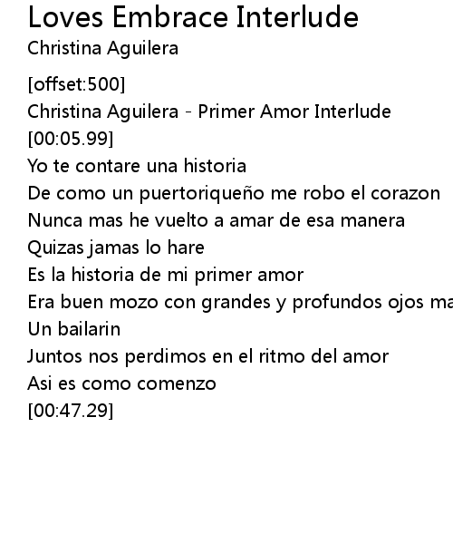 | [00:00.00] | Christina Aguilera Primer Amor Interlude |