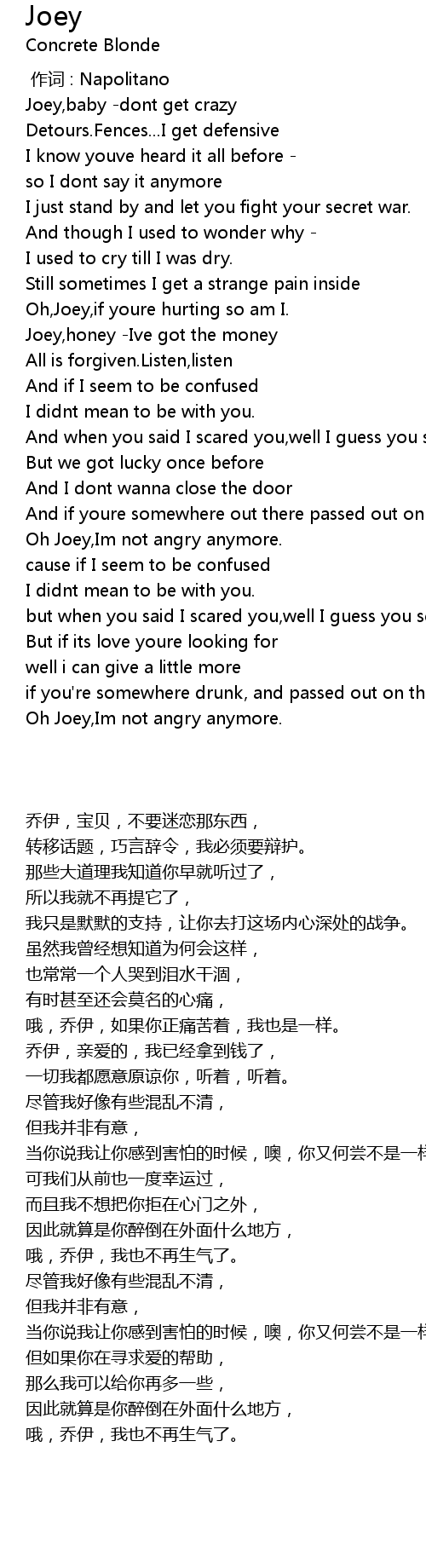 | [00:08.224] | Joey,baby -dont get crazy |