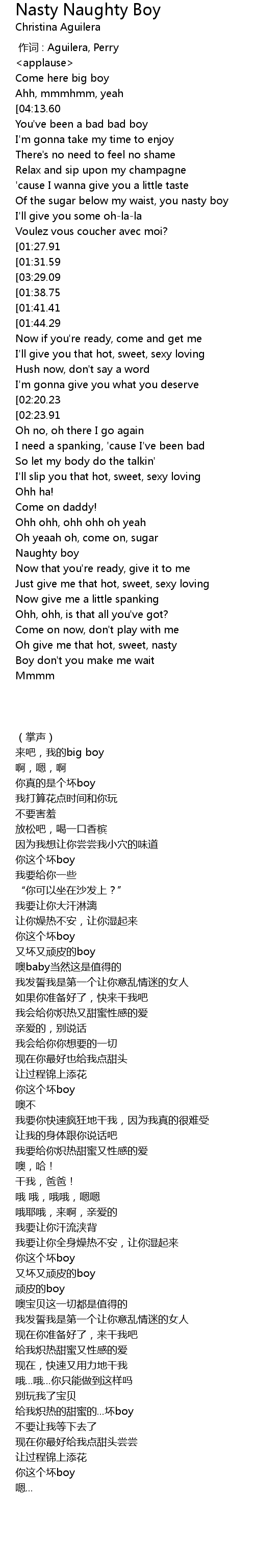 | [03:33.61][01:38.75] | Nasty naughty boy |