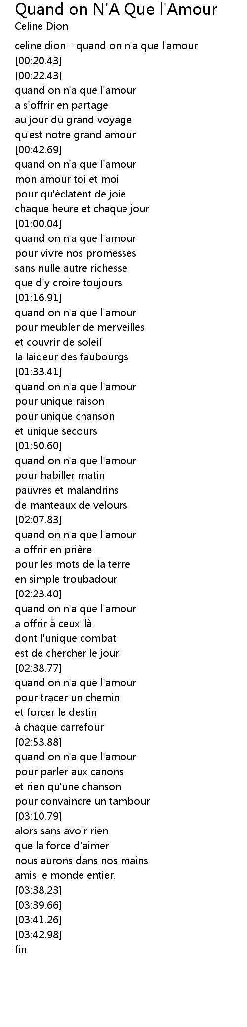 | [00:00.00] | celine dion quand on n' a que l' amour |