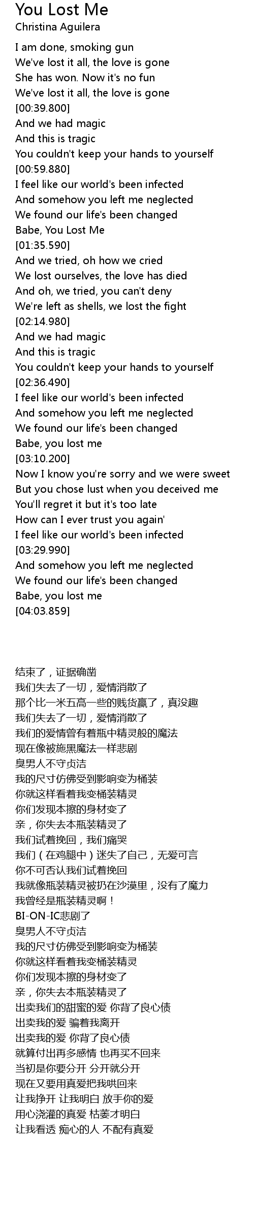 | [00:32.840] | We' ve lost it all, the love is gone |