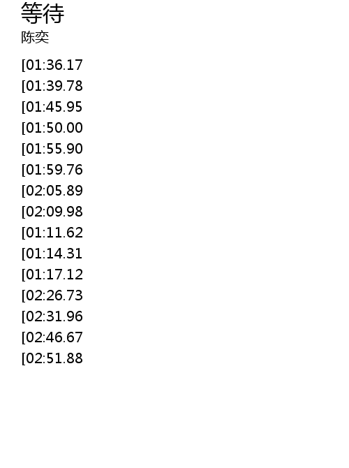 | [00:51.67][01:11.62][02:16.26][02:36.12][03:18.52][03:38.38] | wo yi ran hai zai deng dai |