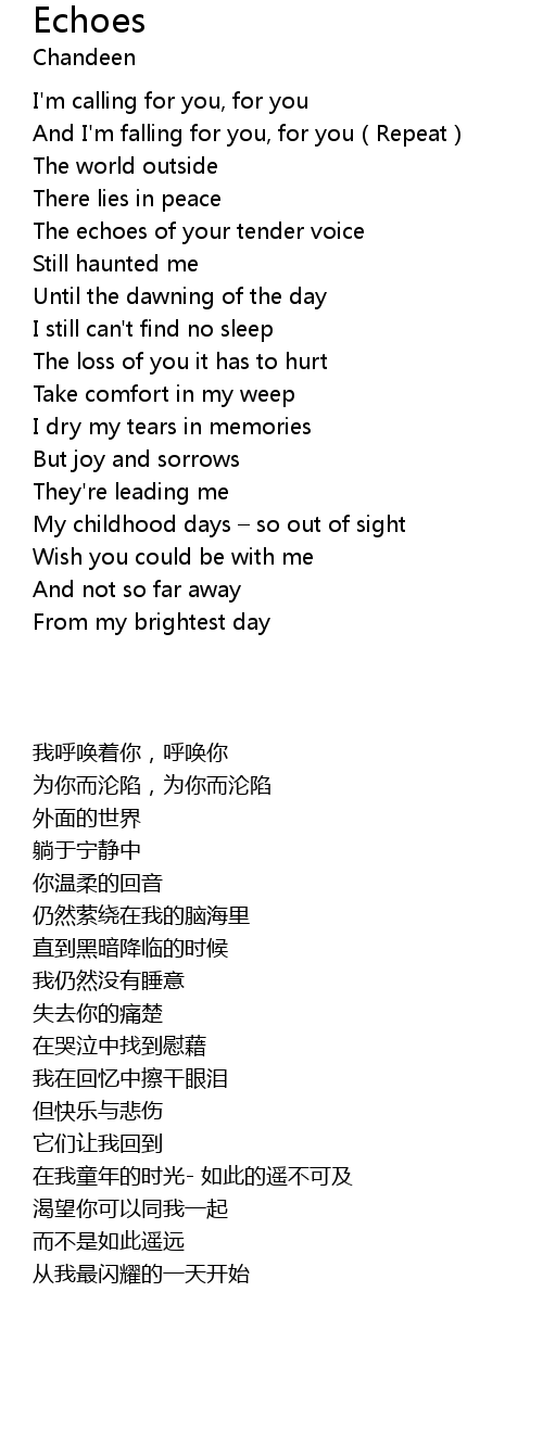 | [01:18.00] | The echoes of your tender voice |